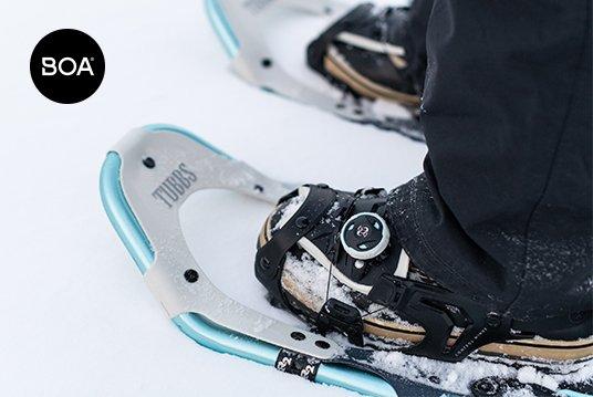 The composite deck of the Flex TRK comes in a. The Tubbs Voyager BOA Mens Snowshoes are great snowshoes for flat terrain like the park or golf course. A grab-and-go side handle lets you transport your gear in one hand while a durable nylon-canvas and mesh construction allows your snowshoes to dry between uses.